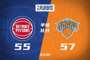 体育资讯4月20日讯 NBA季后赛东部首轮G1,尼克斯半场57-55领先活塞。