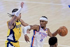 G1中,亚历山大出战40分钟,投篮30中14,三分6中3,罚球8中7,砍下38分5篮板3助攻3抢断,内姆哈德得到14分4篮板6助攻。