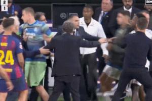 🤣比赛结束姆巴佩还拉着维尼修斯,之后试图加入冲突被直接拦下
