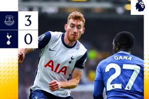 比赛第30分钟,恩迪亚耶踩单车硬突德拉古辛后爆射得手,热刺客场0-2落后埃弗顿↓